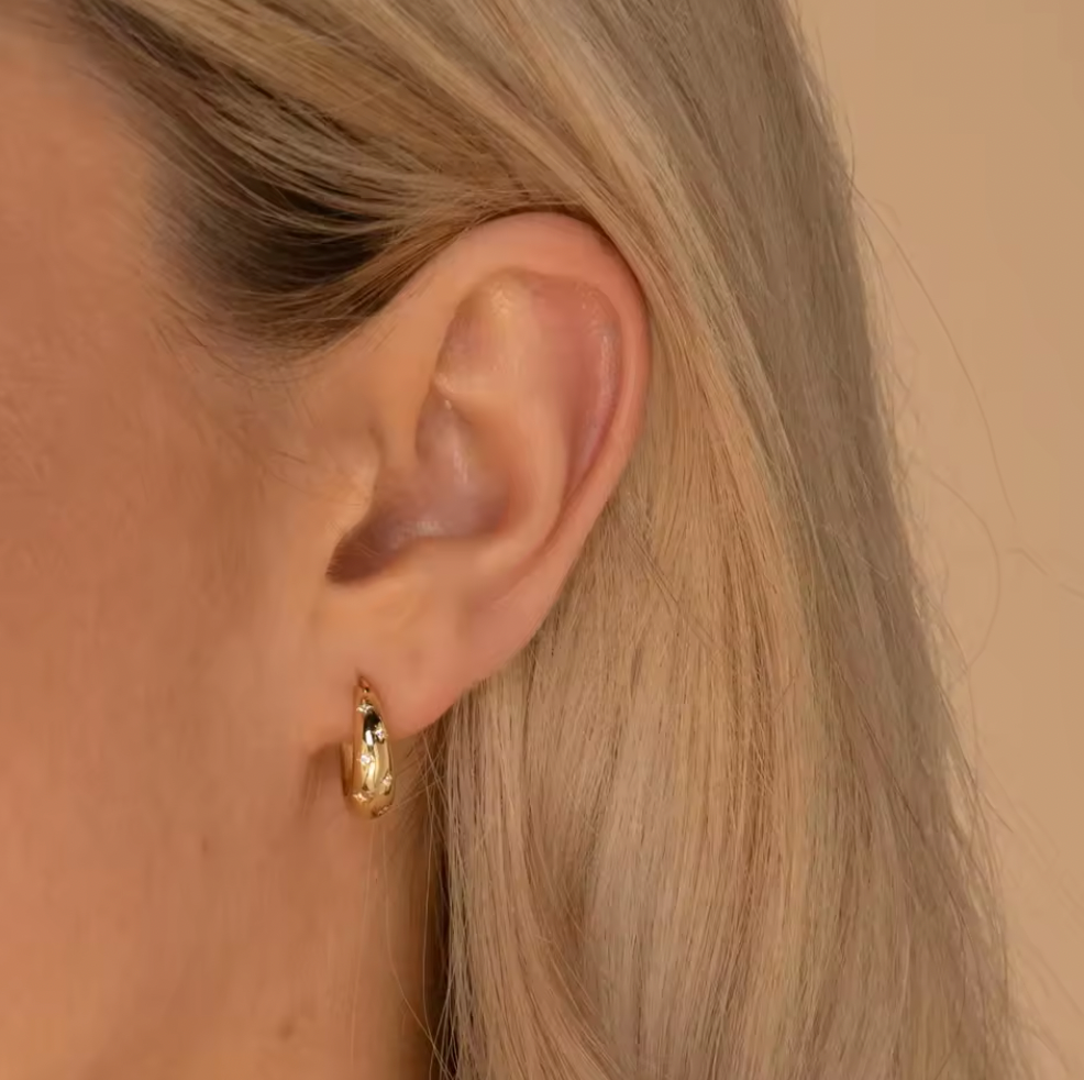 A timeless blend of modern minimalism and celestial charm — these hoops are perfect for stacking or wearing solo as your new go-to pair.